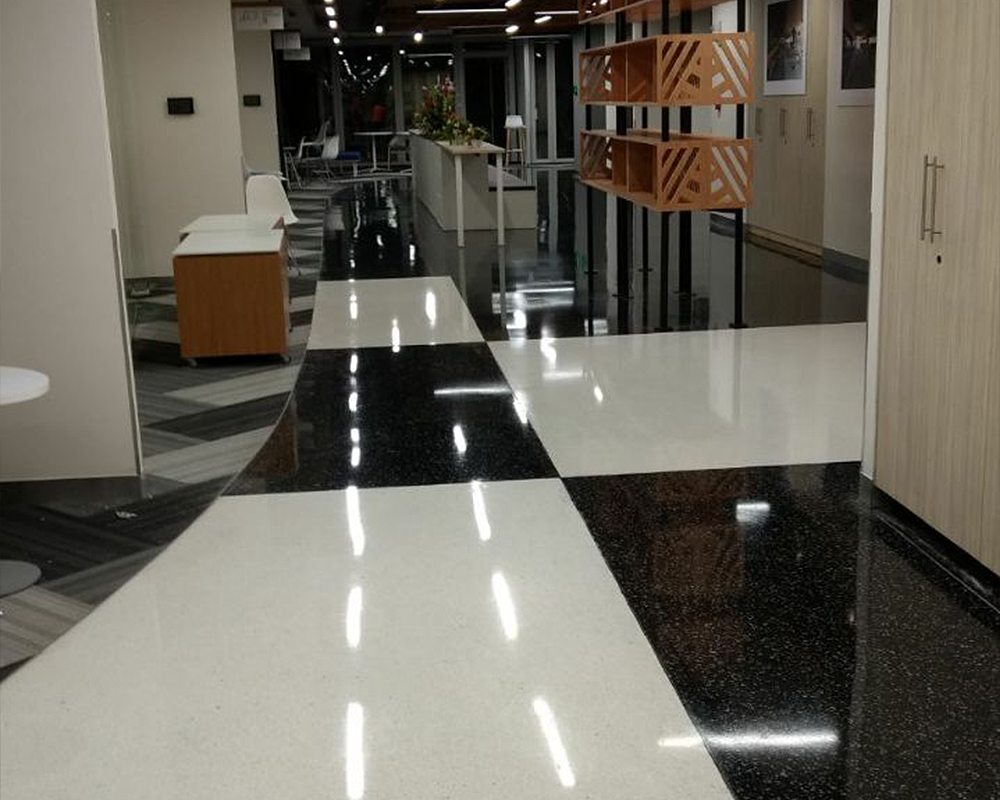 De acuerdo con su premisa original de reciclaje/reutilización, las instalaciones de terrazo actuales combinan una belleza excepcional, una extrema flexibilidad de diseño, durabilidad para durar toda la vida útil del edificio y una increíble facilidad de mantenimiento con las mejores prácticas de construcción sostenible.