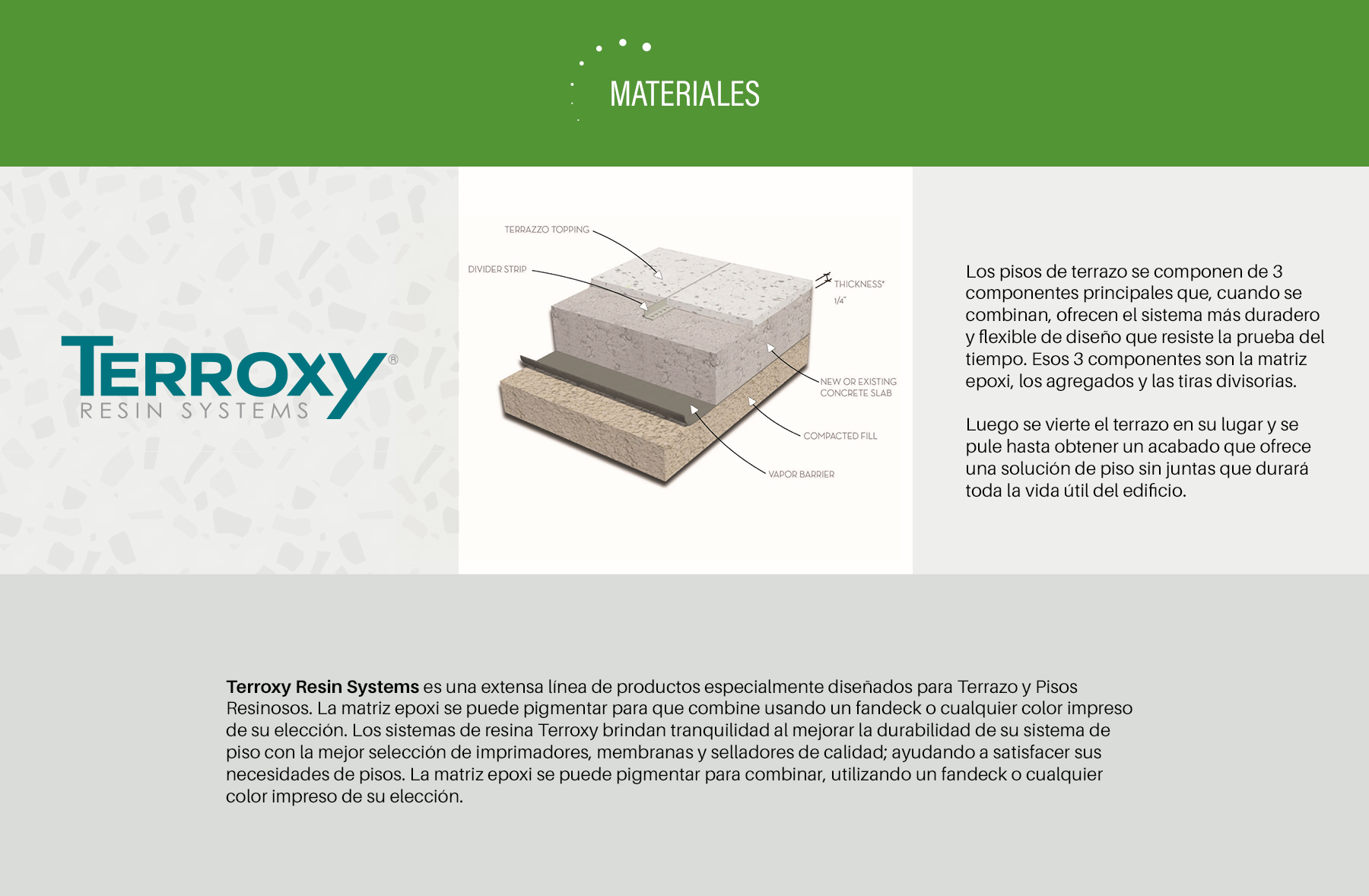 Somos su ventanilla única para proyectos de pisos de terrazo, ofreciendo el sistema completo.